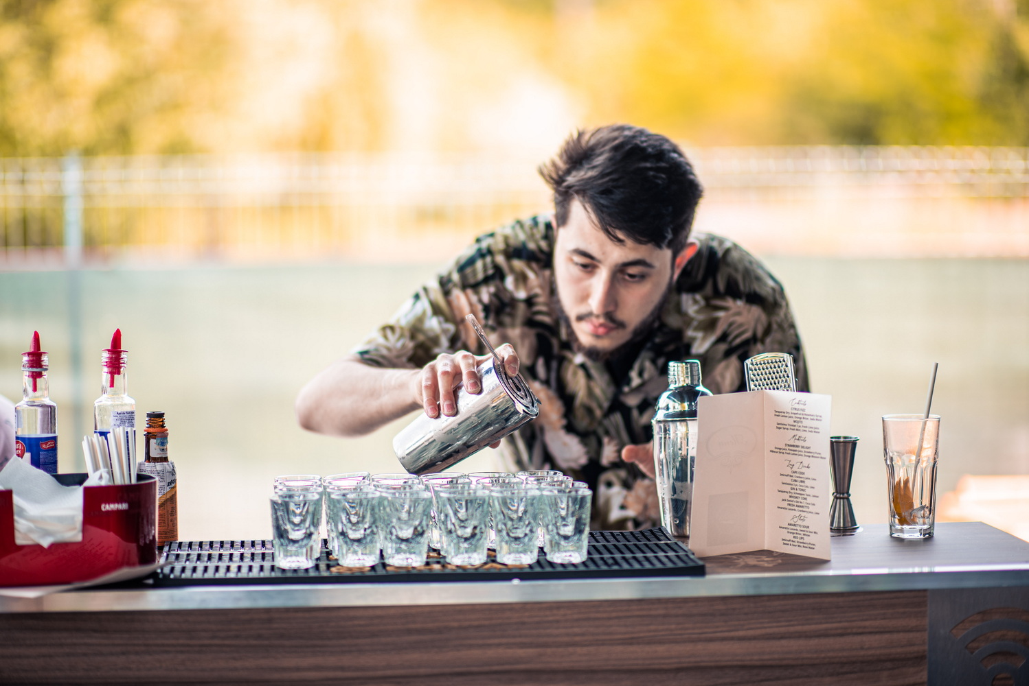 zona de bar este amplasata pe terasa acoperita din fata restaurantului. Barul este amenajat cu zona de spalator vase, zona gheata, blat de lucru, lazi frigorifice, etc.