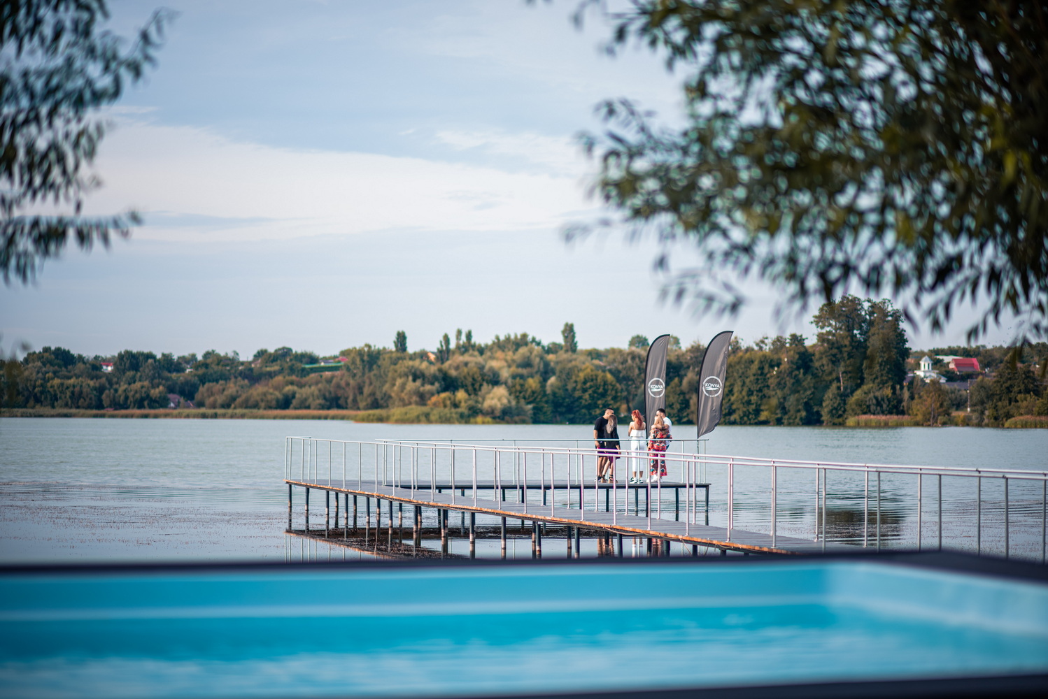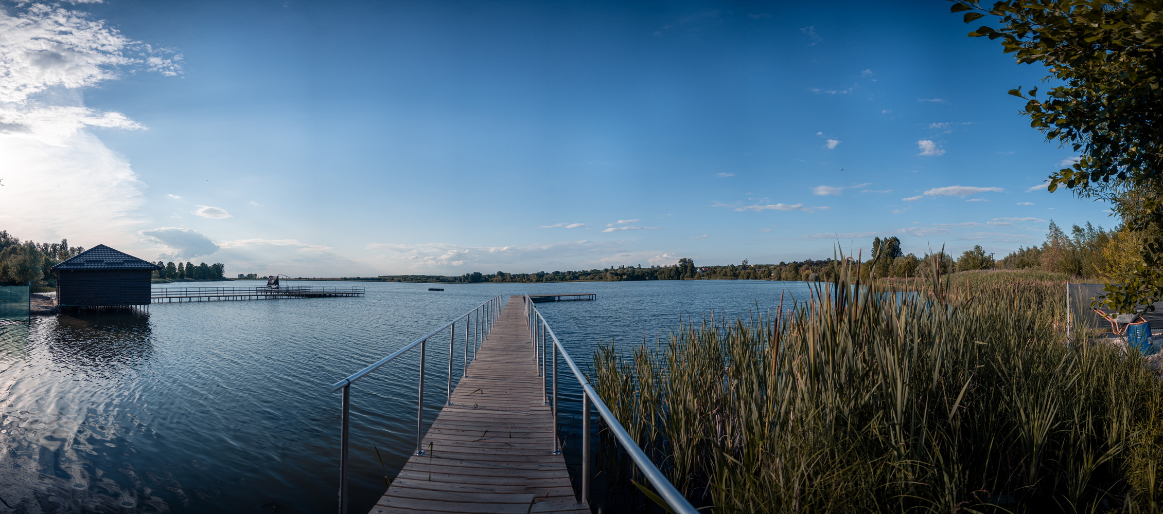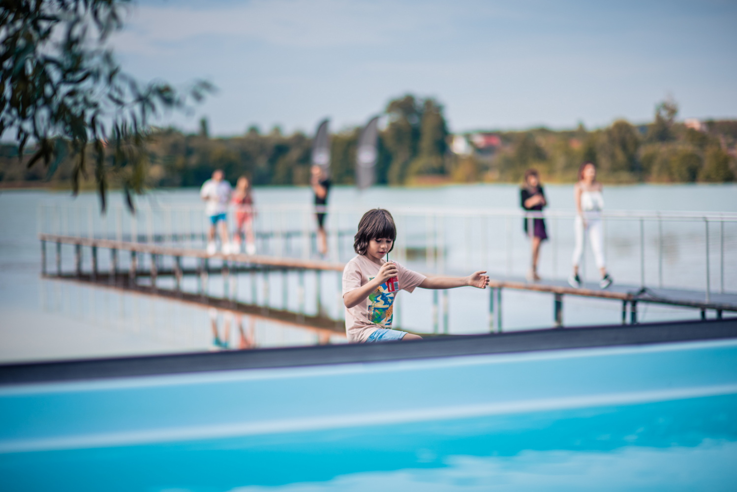 Pontonul este imparti in 2 zone in suprafata toatala de 200 mp. Zona de langa piscina in sufrapata de 100 mp + zona de pe lac
