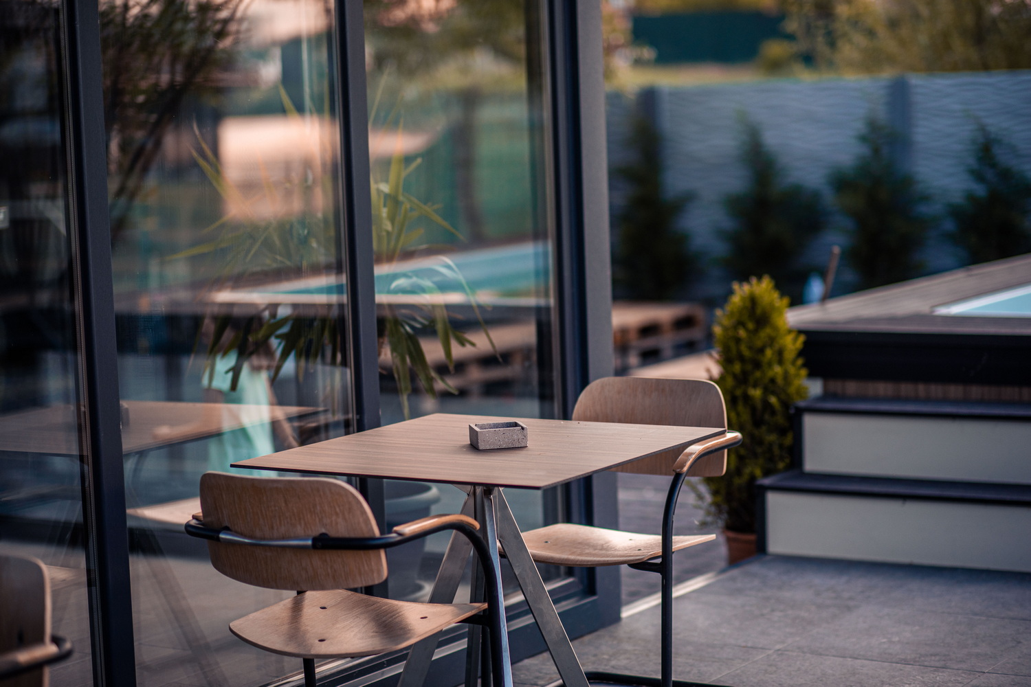 terasa acoperita este situata pe malul lacului in continuarea resturantului si dispunde de o capacitate de 40 de locuri. Terasa este dotata cu mobilier modern, mobilier ce poate fi aranjat in functie de nevoile fiecarui eveniment in parte.